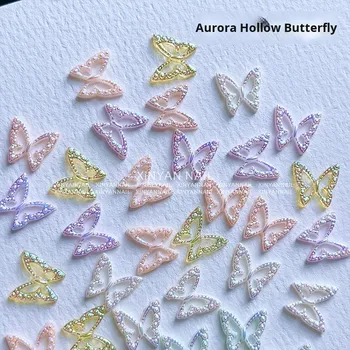 Xinyan เครื่องประดับเล็บรูปผีเสื้อแบบฉลุลายสำหรับคนดังทางอินเทอร์เน็ตใหม่3D หรูหราแสงออโรร่าเรซิ่นพลอยเทียมติดเล็บได้ง่าย