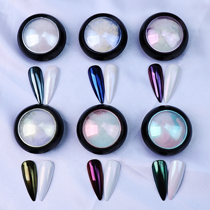 Nhà máy bán Aurora Chrome Nail sắc tố bột 6 màu sắc hiệu ứng bột cho móng tay nghệ thuật ánh trăng bột